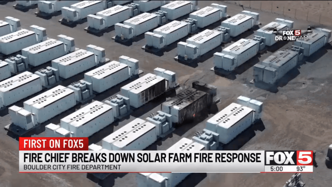 北极星储能网讯:据外媒报道,9月23日晚,美国博尔德市Townsite光伏电站发生锂电池火灾。据博尔德市消防局消息,火灾于晚上7点左右在11号州际公路以南、靠近95号州际公路的位置开始。消防员迅速赶到现场,确认特斯拉Megapack电池组已完全卷入火焰。